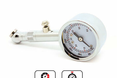 Простота в эксплуатации Две шкалы измерения давления (атм (bar) - psi) Спускной клапан Максимальное давление 7 Атм
