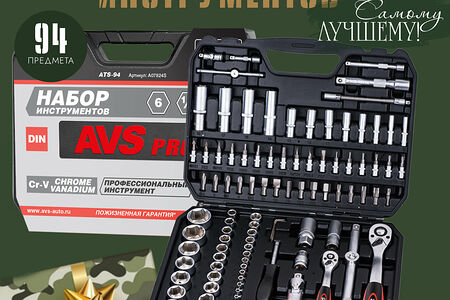 Универсальный набор инструментов для автомобиля AVS ATS-94, 94 предмета для ремонта, для дома (Профессиональный инструмент), A07824S доставка