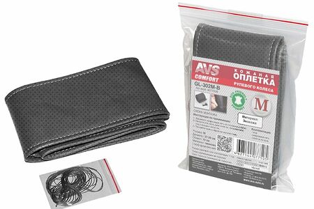 Оплетка на руль перфорированная со шнурком (размер M, черный) (экокожа) AVS GL-302M-B доставка