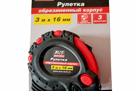 Рулетка 3м х 16 мм обрезиненный корпус (3 фиксатора, зацеп с магнитом) AVS MT3016RM доставка