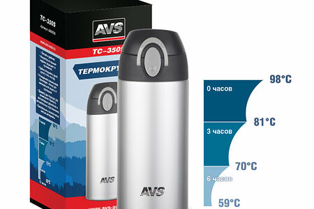 Термокружка AVS TC-350S лёгкая и удобная. Фиксатор на крышке надёжно защищает от проливания. Удобно открывать одной рукой и пить на ходу. Утолщённая силиконовая прокладка - кольцо для максимальной защиты от протекания. Диаметр дна подходит для размещения термоса в велосипедных держателях и автомобильных подстаканниках. Безопасные и экологически чистые материалы.
