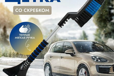 Зимняя щётка со скребком. Мягкая, удобная ручка. Рядность щетины - три ряда щетины. Длина щётки: 63 см.