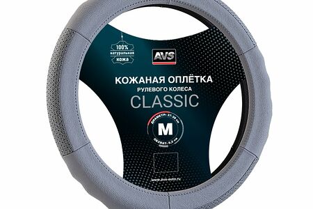 Оплетка на руль (размер M, серый) (натуральная кожа) AVS GL-200M-GR доставка