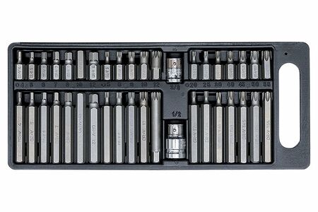 Набор вставок AVS KB40 - это набор, состоящий из 40 элементов, которые включают в себя вставки для работы с крепежом. Эти вставки изготовлены из высококачественной хромованадиевой стали (CrV), что обеспечивает высокую прочность и долговечность. Твердость каждого элемента составляет 48-52 HRC, что гарантирует эффективную работу без повреждения материала.Состав набора:• Вставка шестигранник 30 мм: 4, 5, 6, 7, 8, 10, 12 мм• Вставка шестигранник 75 мм: 4, 5, 6, 7, 8, 10, 12 мм• Вставка TORX 30 мм с отверстием: T20, T25, T30, T40, T45, T50, T55• Вставка TORX 75 мм с отверстием: T20, T25, T30, T40, T45, T50, T55• Вставка SPLINE 30 мм: М5, М6, М8, М10, М12• Вставка SPLINE 75 мм: М5, М6, М8, М10, М12• Держатель вставки: F1/2"DR*F3/8"HEX• Держатель вставки: F3/8"DR*F3/8"HEX• Пластиковый кейсКаждый элемент набора имеет свою уникальную форму, что позволяет эффективно работать с различными видами крепежа. Кейс для хранения и переноски комплекта обеспечивает удобство транспортировки и хранения.Преимущества набора AVS KB40:- Высококачественные материалы;- Высокая прочность и долговечность;- Эффективная работа с разными видами крепежа;- Удобный кейс для хранения и транспортировки;- Доступная цена.Этот набор идеально подходит для использования в автосервисах, мастерских, на производстве и в домашних условиях. Он поможет быстро и эффективно решить любые задачи, связанные с ремонтом и обслуживанием автомобилей, мотоциклов, велосипедов и других транспортных средств.