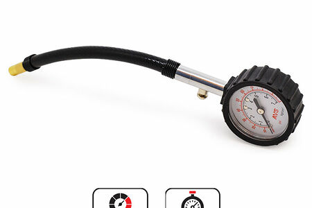 Простота в эксплуатации Две шкалы измерения давления (атм (bar) - psi) Спускной клапан Шланг-удлинитель Максимальное давление 7 Атм