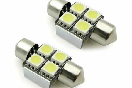 Цоколь SV8,5 Напряжение 12V Температура свечения 5500-6500К Тип и количество диодов: 4SMD Пременяются в подсветке номерного знака и освещении салона