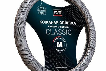 Оплетка на руль (размер M, серый) (натуральная кожа) AVS GL-296M-GR доставка