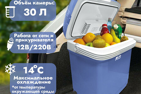 Холодильник автомобильный AVS CC-30B 12V/220V (с ручкой и колёсиками), 30 литров, термоэлектрический (эффект Пельтье), A80553S доставка