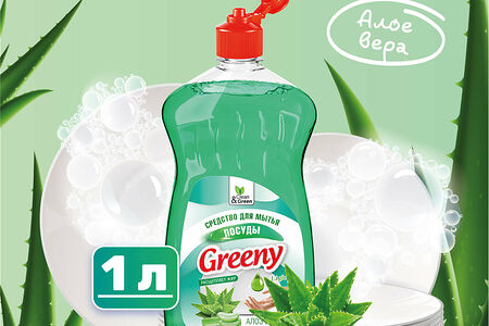 Моющее средство Greeny Light Clean&Green Алоэ вера для ручного мытья посуды, 1 литр, CG8156 доставка