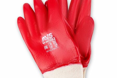 Перчатки AVS RP-09 ПВХ полный облив МБС (красные, резиновая манжета) 1 пара доставка