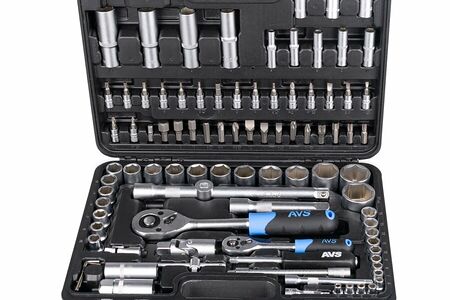 Набор инструментов AVS предназначен для ремонта и обслуживания автомобиля. Может быть использован в гараже, в мастерской или в быту. Все компоненты набора изготовлены из высокопрочной закаленной углеродистой стали, имеют матовое хромированное покрытие, благодаря чему отличаются высокой прочностью и долговечностью. Трещотки оснащены храповым механизмом на 45 зубцов и имеют двухкомпонентные эргономичные рукояти. В набор входит 94 предмета. Состав набора указан на упаковке. Прочный кейс для удобного хранения и транспортировки.Привод 1/2“ DR• Головка торцевая 6-гранная: 10, 11, 12, 13, 14, 15, 16, 17, 18, 19, 20, 21, 22, 23, 24, 27, 30, 32 мм;• Головка торцевая глубокая 6-гранная: 14, 15, 17, 19 мм;• Головка торцевая свечная: 16, 21 мм;• Рукоятка трещоточная 45 зубцов;• Удлинитель: 125, 250 мм;• Адаптер для воротка 3/8" х 1/2";• Карданный шарнир;• Держатель бит;• Ключ шестигранный Г-образный: 1.5, 2, 2.5 мм.Биты 5/16"HDR х 30 мм• Бита TORX: Т40, Т45, Т50, Т55;• Бита шестигранная: H8, H10, H12, H14;• Бита шлицевая: SL8, SL10, SL12;• Бита крестовая: PH3, РН4;• Бита POZIDRIV: PZ3, PZ4.Привод 1/4“ DR• Головка торцевая 6-гранная: 4, 4.5, 5, 5.5, 6, 7, 8, 9, 10, 11, 12, 13, 14 мм;• Головка торцевая глубокая 6-гранная: 6, 7, 8, 9, 10, 11, 12, 13 мм;• Рукоятка трещоточная 45 зубцов;• Удлинитель: 50, 100 мм;• Вороток Т-образный 115 мм;• Отверточная рукоятка;• Удлинитель гибкий 150 мм;• Карданный шарнир;• Головка со вставкой TORX: Т8, Т10, Т15, Т20, Т25, Т30;• Головка со вставкой шестигранной: Н3, Н4, Н5, Н6;• Головка со вставкой шлицевой: SL4, SL5.5, SL7;• Головка со вставкой крестовой: PH1, РН2;• Головка со вставкой POZIDRIV: PZ1, PZ2;• Адаптер-переходник для бит.Материал - закаленная углеродистая стальПокрытие - матовое хромированноеВес: 6 кг