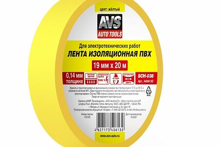 Лента изоляционная ПВХ AVS SCH-038 19 mm x 20 m (жёлтая) доставка