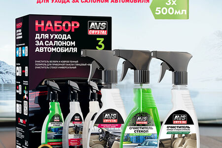 Набор для ухода за салоном автомобиля AVK-927Состав набора:1. Очиститель велюра и ковров пенный (триггер) 500 мл. AVS AVK-020Специально подобранная композиция чистящих веществ легко и быстро удаляет загрязнения различного происхождения с элементов обивки салона автомобиля. Удаляет свежие пятна кофе, сока, чая, соуса, молока. Восстанавливает первоначальную структуру обрабатываемой поверхности, поднимает ворс, восстанавливает цвет. Обладает антистатическим и водоотталкивающим действием.2. Полироль для приборной панели глянцевая "BubbleGum/Бабл гам" 500 мл (триггер) AVS AVK-681Придает глянцевый блеск, прекрасно очищает и обновляет внешний вид приборной панели. Эффективное средство для очистки и полировки приборной панели, пластиковых и резиновых деталей автомобиля.3. Очиститель стекол универсальный (триггер 500 мл) AVS AVK-689Универсальный очиститель для стекол, зеркал, хрусталя, керамической плитки, хрома и пластика. Идеально подходит для очистки автомобильных стекол, зеркал и фар от дорожных загрязнений и следов насекомых. С внутренней стороны стекол эффективно удаляет никотиновые образования. Действует мгновенно, придавая стёклам блеск без разводов и максимальную прозрачность. Может применяться для чистки экрана монитора и телевизора, корпусной мебели, торгового оборудования, бережно очищает полимерные покрытия пластиковых окон. Препятствует образованию статического электричества.Размеры: 17,4х10,8х30 см.Вес: 1.77 кг.