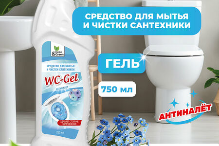 Средство для мытья и чистки сантехники WC-Gel (кислотное) 750 мл Clean&Green CG8074 доставка