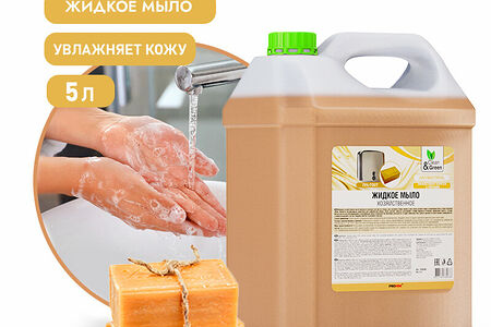 Незаменимое средство для безопасного и деликатного очищения любых поверхностей, является жидким аналогом традиционного хозяйственного мыла. Подходит для мытья посуды, рук, кухонной утвари, ручной стирки и замачивания белья, рабочих водостойких поверхностей (деревянных, керамических, пластмассовых и пр.), окон, полов, сантехники. Легко удаляет сильные загрязнения, стойкие жировые отложения, эффективно борется с пятнами, даже в холодной воде. Создает обильную пену, хорошо смывается водой.Способ применения: Для мытья полов, стен, кухонного оборудования и любых других рабочих поверхностей: 30 мл средства растворить в 5 литрах воды. Для влажной уборки сильно загрязненных поверхностей: 50-75 мл средства растворить в 5 литрах воды. Для мытья посуды: нанести небольшое количество средства на губку, вспенить, вымыть посуду пенным составом и смыть проточной водой. Для ручной стирки белья: растворить 150 мл средства в тазике с водой, замочить белье при температуре +40-50°С 20-30 минут, постирать и прополоскать водой.Меры предосторожности: Не принимать внутрь! Избегать попадания в глаза! При попадании на слизистые оболочки промыть большим количеством проточной воды. При необходимости обратиться к врачу. Использовать по назначению. Беречь от детей.Условия транспортировки и хранения: Рекомендуется хранить в сухом, хорошо проветриваемом помещении на расстоянии не менее 1 м от нагревательных приборов, при температуре от +5°С до +35°С, в плотно закрытой упаковке, отдельно от пищевых продуктов. Избегать попадания прямых солнечных лучей.Срок годности: 3 года.Вес: 5 кг