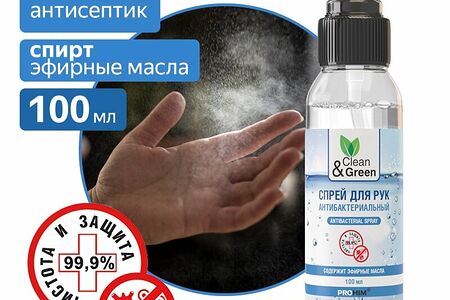 Спрей для рук антибактериальный 100 мл Clean&Green CG8001 доставка