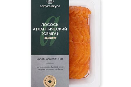Лосось Азбука вкуса (семга) холодного копчения ломтики «Собственное производство» 200г, Россия доставка