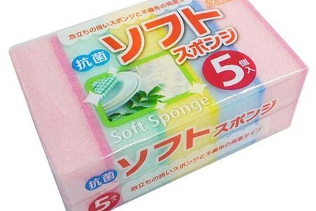 Губка для мытья посуды Ajwa с абразивным слоем (мягкая) 5шт, Япония доставка