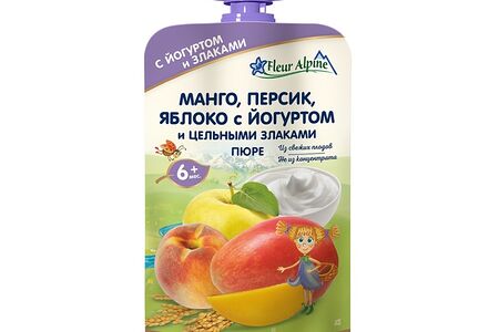 Пюре «Манго, персик, яблоко с йогуртом и цельными злаками» с 6 месяцев, Fleur Alpine Organic доставка