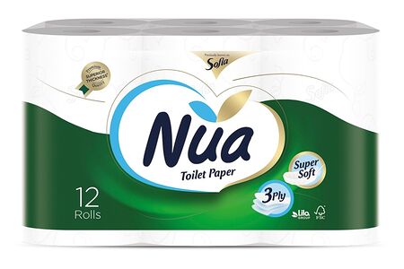 Туалетная бумага трёхслойная 150 листов, Nua, 12 рулонов, Турция доставка