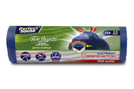 Мешки для мусора PERFECT HOUSE Two Layers 35 л, 15 шт с завязками доставка