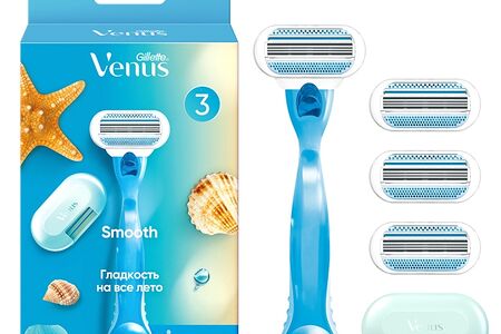 Станок для бритья: бритва со сменной кассетой и чехлом + сменные кассеты для бритья 3 шт., Gillette Venus, Польша доставка