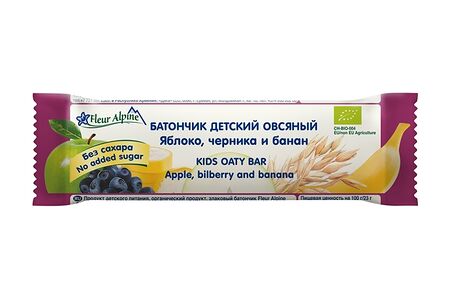 Батончик детский овсяный Fleur Alpine яблоко, черника и банан без сахара 3+ доставка