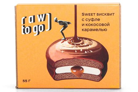 Десерт Sweet бисквит с суфле и кокосовой карамелью Raw to go 55 г, Россия доставка