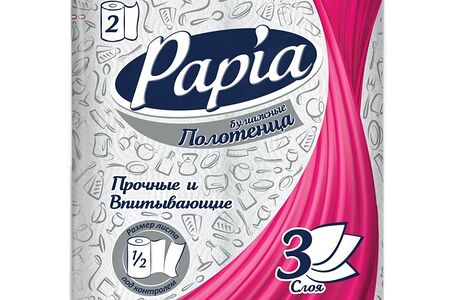 Бумажные полотенца Papia Прочные и Впитывающие белые 3 слоя 2 рулона доставка