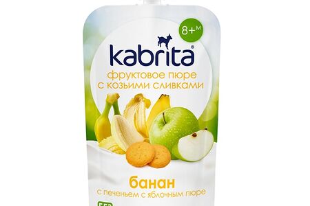 Пюре фруктовое Kabrita с козьими сливками Банан с печеньем и яблочным пюре, с 8 месяцев доставка