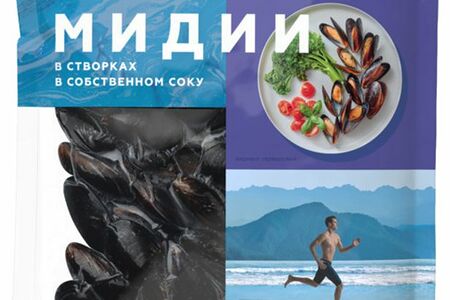 Мидии в створках Agama в собственном соку варёно-мороженые, 450г доставка