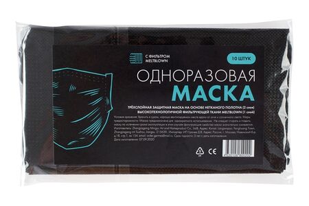 Маска защитная одноразовая трехслойная черная (10шт/уп) Китай доставка