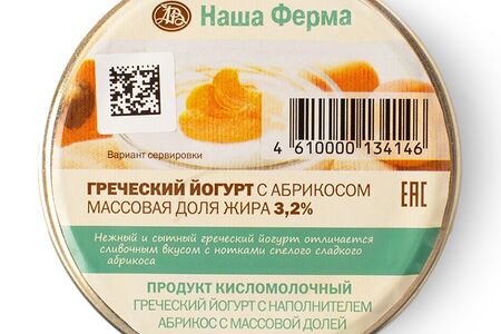 Йогурт греческий с абрикосовым джемом 3,2%, «Наша Ферма», Тверская область, БЗМЖ доставка