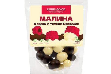 Малина Ufeelgood в темном и белом шоколаде (без сахара, веган) 100г Россия доставка