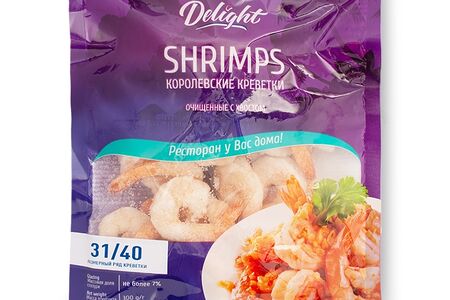 Креветки ваннамей варёно-мороженые очищенные с хвостом, калибр 31/40 в кг, Delight доставка
