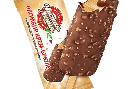 Мороженое Чистая Линия пломбир крем-брюле с арахисом в шоколадной глазури, эскимо доставка