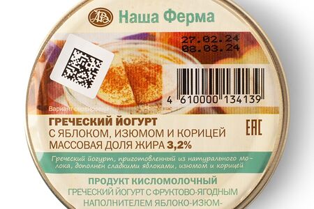 Йогурт греческий с яблочным джемом и изюмом 3,2%, «Наша Ферма», Тверская область, БЗМЖ доставка