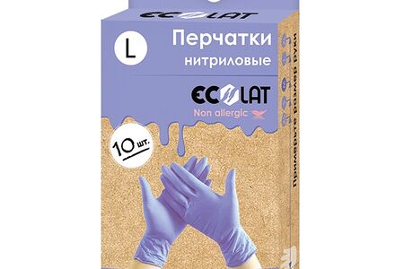 Перчатки Ecolat нитриловые, сиреневые, 10шт./уп, размер L Россия доставка