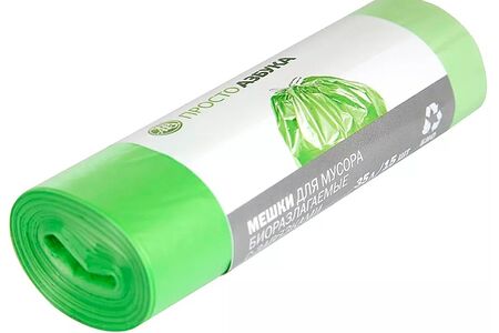 Мешки для мусора биоразлагаемые с завязками 35 л, «Просто Азбука», 15 шт., Россия доставка