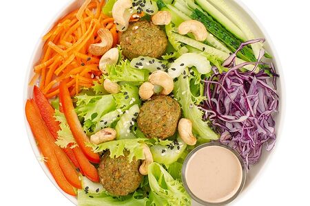 Салат веганский с ароматным фалафелем и кунжутно-ореховой заправкой доставка
