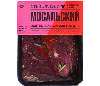 Стейк флэнк из покромки мяса молодых бычков с перцем чили, с собственной фермы «Азбуки вкуса» в г. Мосальске, 500 г доставка