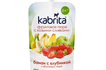 Пюре фруктовое Kabrita с козьими сливками "Банан с клубникой и яблочным пюре" доставка