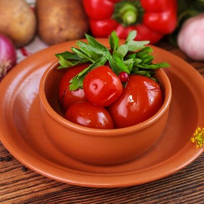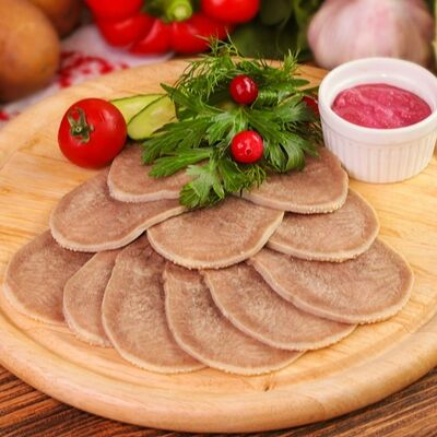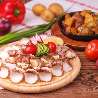 Уши свиные, помидор свежий, лук