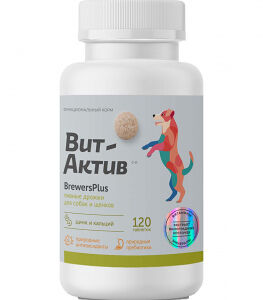 Биологически активная кормовая добавка Вит-Актив BrewersPlus Пивные дрожжи для собак и щенков, 120 таблеток доставка
