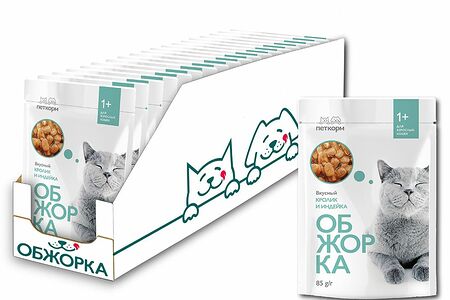 Корм для кошек ОБЖОРКА кусочки в желе с кроликом и индейкой пауч 85г (упаковка - 24 шт) доставка