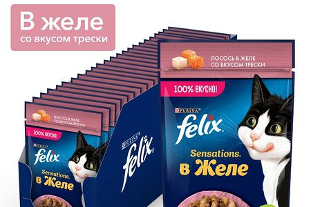 Корм для кошек FELIX Sensations Желе лосось с треской 26х75г (упаковка - 26 шт) доставка