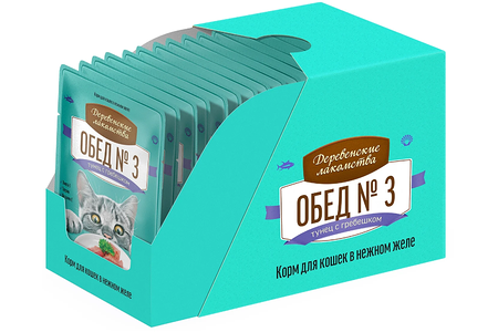Влажный корм для кошек Деревенские лакомства Обед №3 Тунец с гребешком (упаковка - 12 шт) доставка