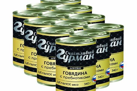 Корм для собак СЧАСТЛИВЫЙ ГУРМАН Говядина натуральная с пребиотиком в желе конс.340г (упаковка - 12 шт) доставка