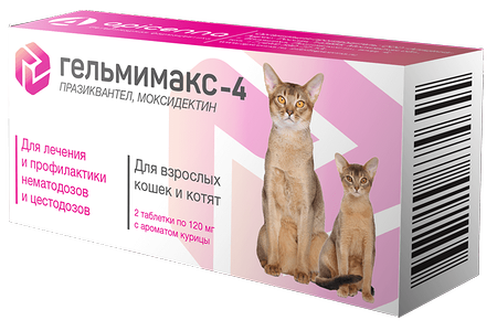 Антигельминтик APICENNA Гельмимакс-4 для взрослых кошек и котят 2 таб. по 120мг доставка