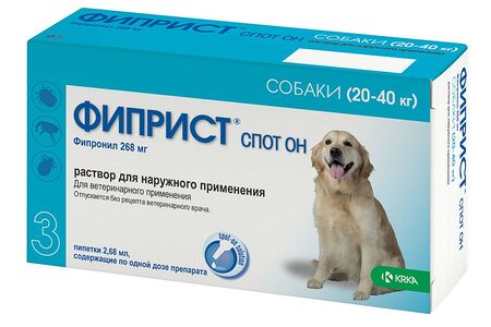 Капли для собак KRKA Фиприст Спот Он 20-40кг 268мг 3 пип доставка